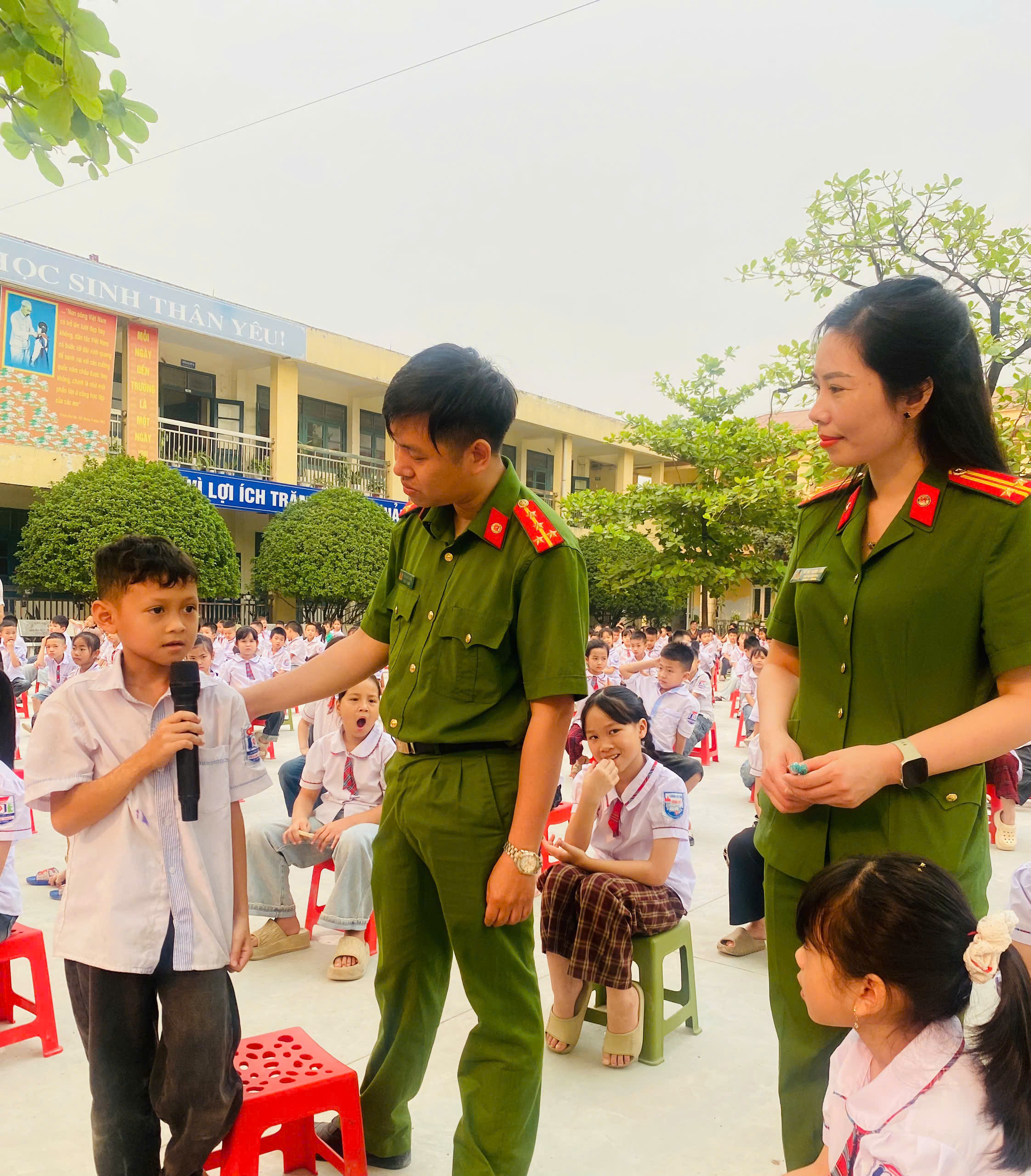 Tại buổi tuyên truyền, các chiến sĩ Công an đã chia sẻ những kiến thức bổ ích về luật giao thông đường bộ, cách nhận diện và phòng tránh các loại ma túy mới đang len lỏi vào môi trường học đường.
