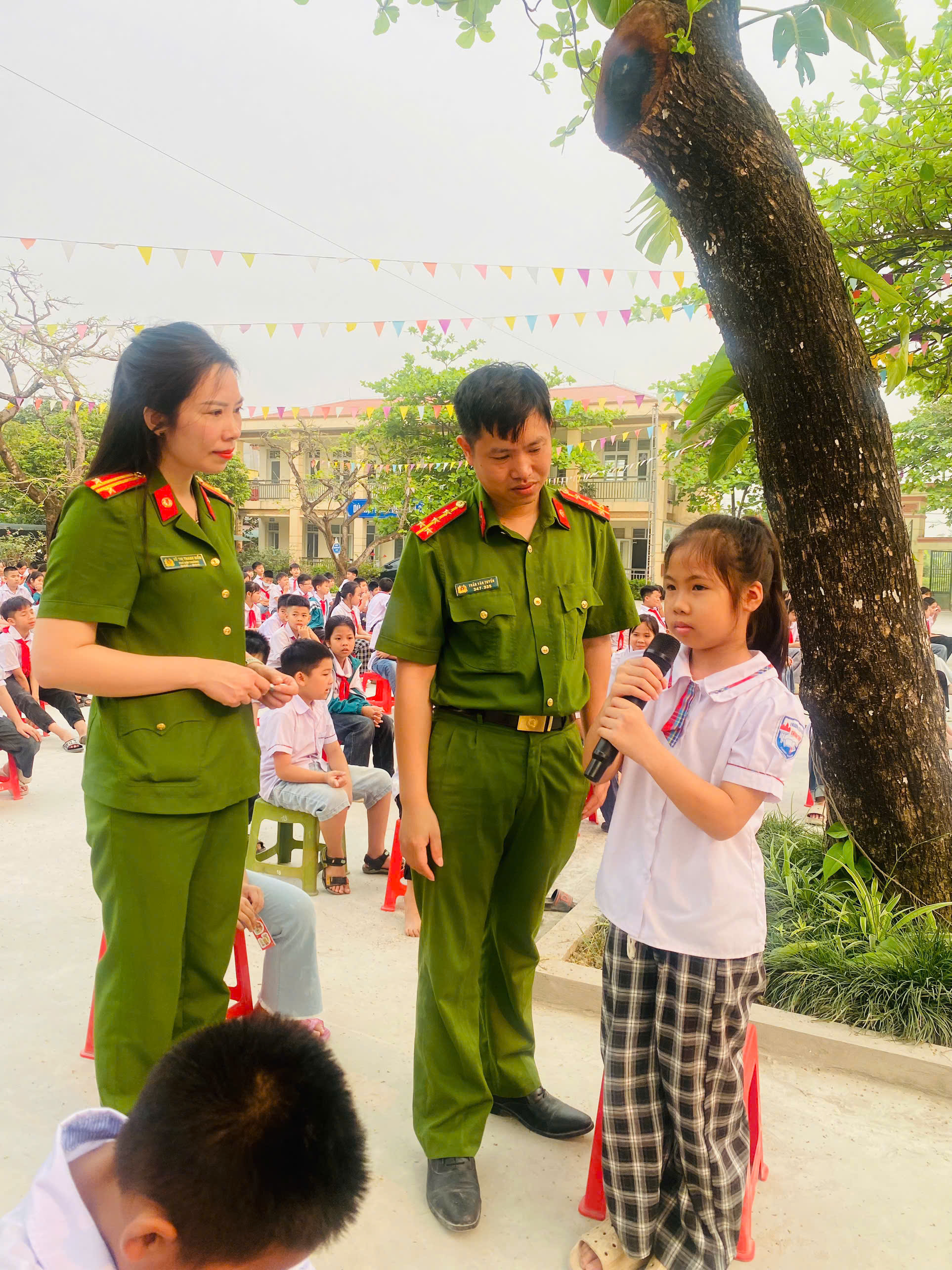 Không chỉ lắng nghe, các em học sinh còn hào hứng tham gia phần giao lưu hỏi đáp. Những tình huống giao thông thực tế được đưa ra giúp các em rèn luyện kỹ năng xử lý tình huống và ghi nhớ kiến thức một cách tự nhiên, hiệu quả.